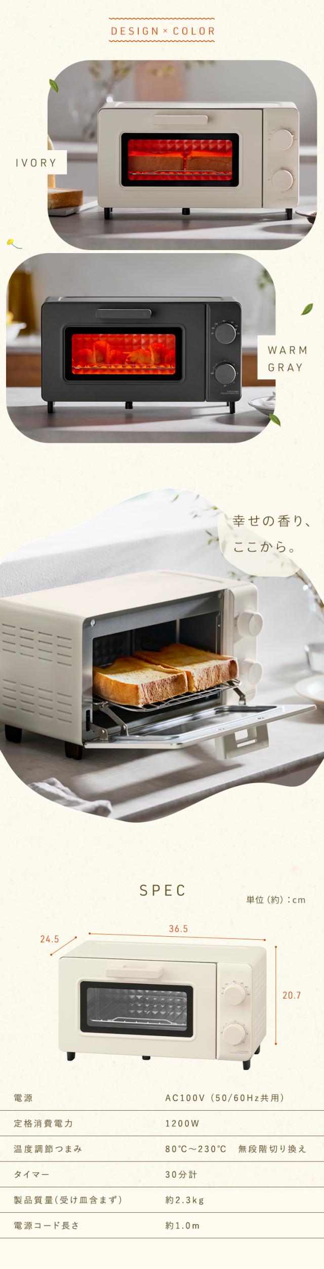 トースター オーブントースター 2枚焼き おしゃれ かわいい 角皿付き 80℃ 230℃ 無段階調整 タイマー付き 一人暮らし 新生活 アイリスオーヤマ EOT-201-W *