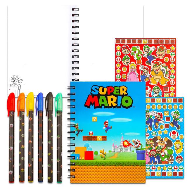 スーパーマリオ お絵かき帳 カラーペン ボールペン メモ帳 シール ステッカー 子ども オシャレ雑貨 シールセット 手帳 ファンシー雑貨 ごほうび できましたシール こども 幼児 園児 2歳 3歳 4歳 5歳 6歳 7歳 8歳 9歳 10歳 おもちゃ お誕生日 男の子 女の子 子供用 キッズ用 大人 可愛い ステッカー デコ