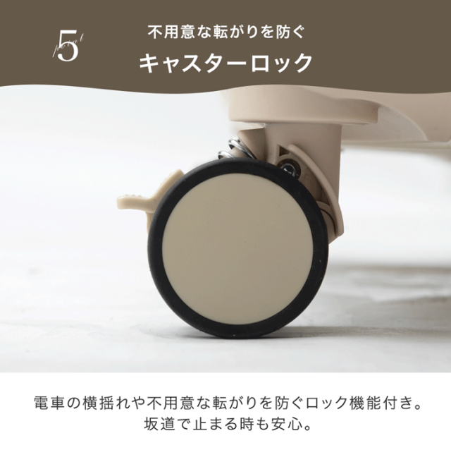 ※キャスターロックはキャスターが動くのを止める補助機能です。完全に走行を止めるものではありませんので、ご了承ください。