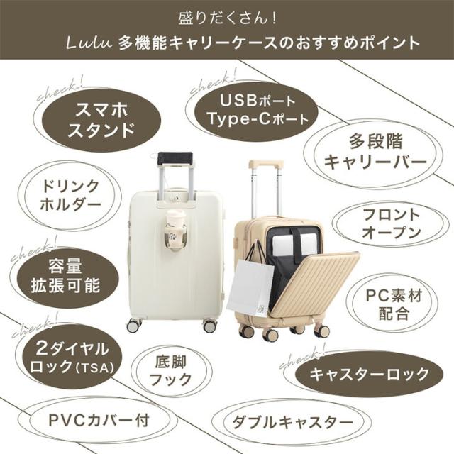 【正午〜P5%還元】 多機能キャリーケース [Sサイズ 機内持ち込みOK 41L] フロントオープン 多機能 充電 USB type-c カップホルダー スマホスタンド キャリーケース キャリーバッグ スーツケース 機内持ち込み 軽量