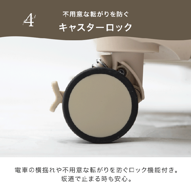 ※キャスターロックはキャスターが動くのを止める補助機能です。完全に走行を止めるものではありませんので、ご了承ください。