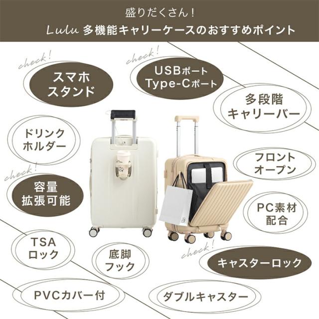 多機能キャリーケース [ Sサイズ 機内持ち込みOK 41L ] フロントオープン 多機能 充電 USB type-c カップホルダー スマホスタンド キャリーケース キャリーバッグ スーツケース 機内持ち込み 軽量