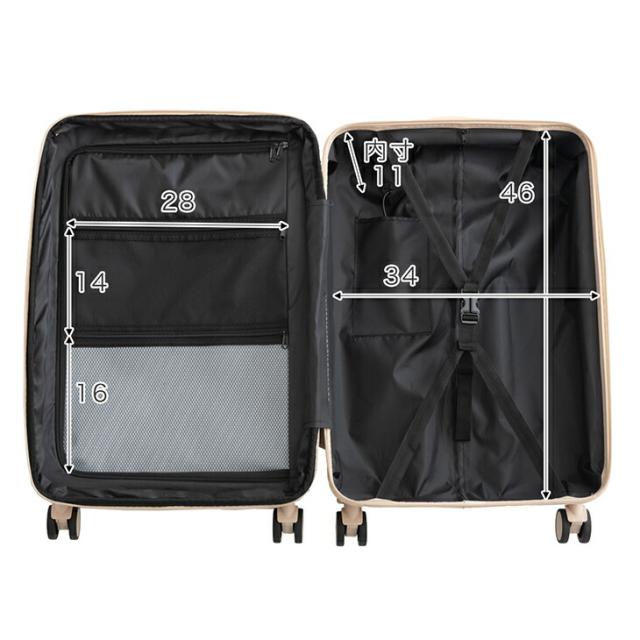 荷物を詰め具合によっては、本体材質の性質上、キャリーケースが膨らみサイズが変わる場合がございますのでご注意ください。