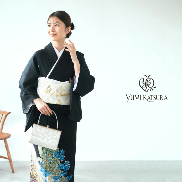 桂由美 YUMI KATSURA ブランド レンタル 黒留袖 フルセット 結婚式 婚礼 貸衣装 往復送料無料 豪華モダン柄 華やか 新婦母 薔薇 バラ No225