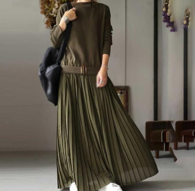 3colors 体型カバー ゆったり ワンピ ワンピース レディース マキシ丈 シフファン切り替えワンピース 長袖 ファッション 可愛い