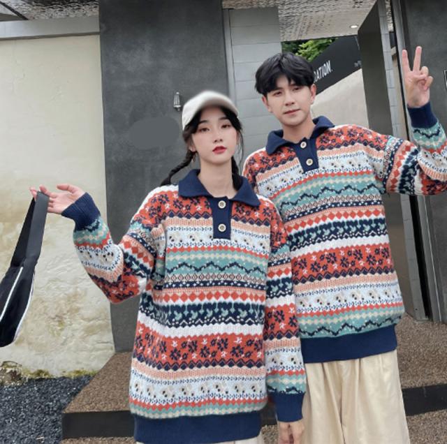 ペアニットセーター カットソー ペアルックニット 秋冬 厚手 メンズ レディース 長袖 トップス カップルお揃い男女兼用 プレゼント お誕生日