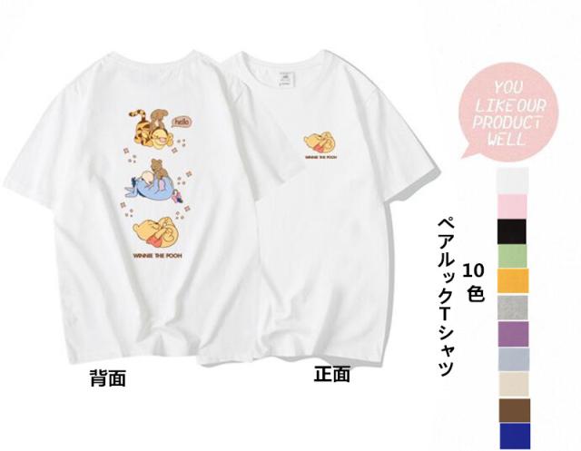 10色 ディズニー Tee プーさん ティガー イーヨー プリントtシャツ キャラTシャツ T-shirt 半袖Tシャツ トップス ペアルック カップル 恋人 夫婦 お揃い ユニセックス 男女兼用 お友達 カジュアル おしゃれ 可愛い 人気 夏新作 お出かけ 旅行 プレゼント