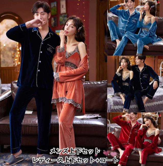 「ペア販売」4COLORS ペアルックパジャマ メンズ上下セット レディース 上下セットナイトロープ 秋冬ルームウェア 裏起毛 暖かい