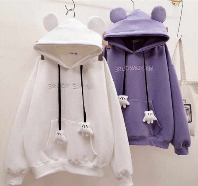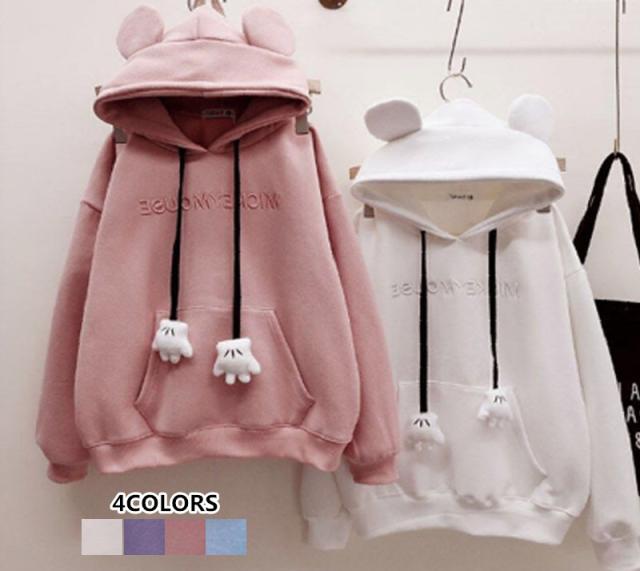 4COLORS ミッキー パーカー ディズニートレーナー トップス スウェット 上着 長袖 帽子付き 綿 お誕生日 厚手