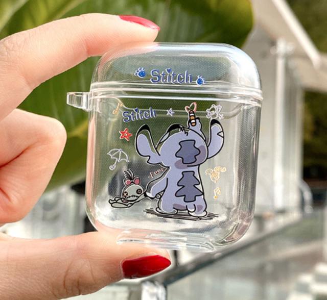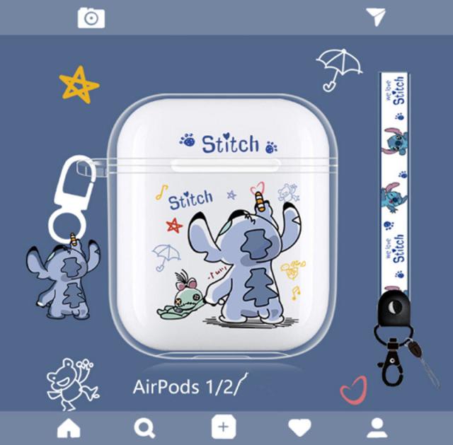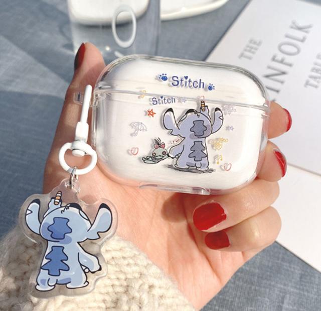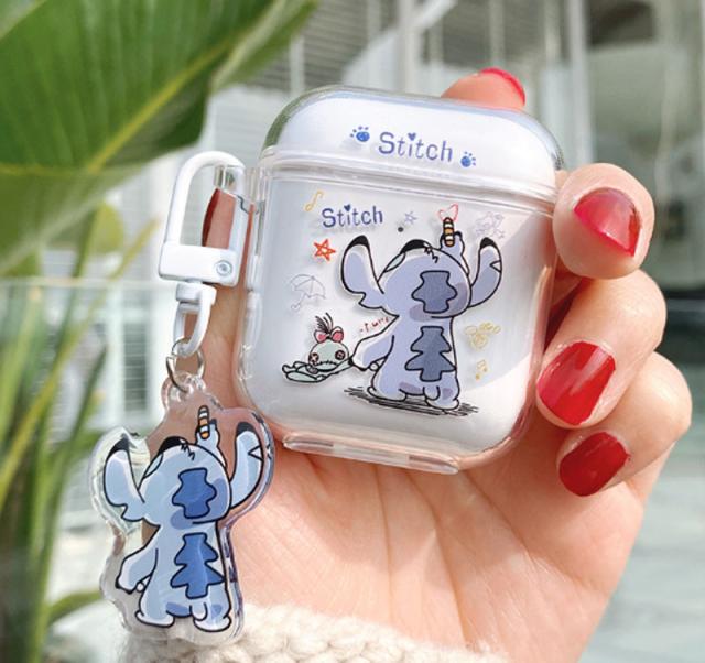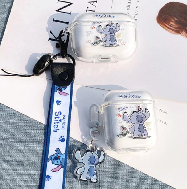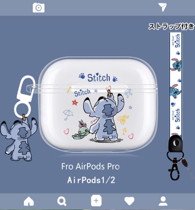 AirPods第3世代 AirPods1/2 AirPodspro エアーポッズ ケース シリコン カバー スティッチ ワイヤレスイヤホン 保護カバー エアーポッズ ケース 可愛い 収納バッグ 耐衝撃 PStitchi柄 ストラップ付き 透明