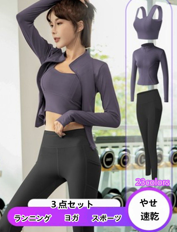 3点セット スポーツウェア レディース セットアップ スポーツコート ヨガブラ ランニングウェア タイツト ウェット フィットネス 長袖 トレーニング レギンス 吸汗速乾 痩せ 美脚 伸縮