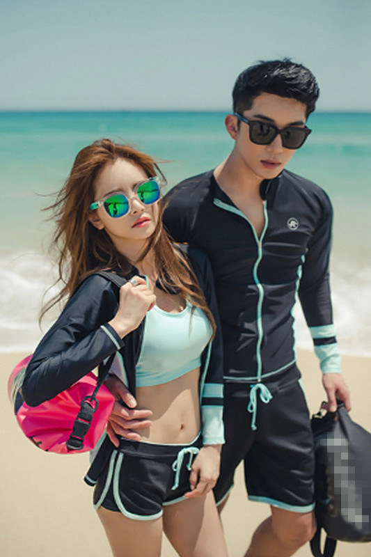 ペアルック カップル 水着スイムウエア フィットネス水着 ご夫婦.カップルお揃い ラッシュガード 紫外線対策 日焼け防止 ファッション