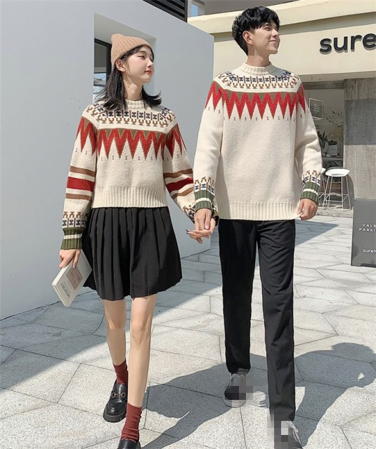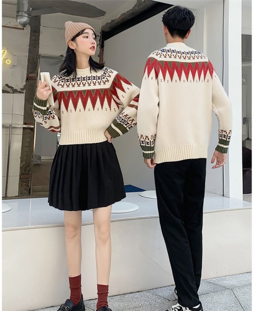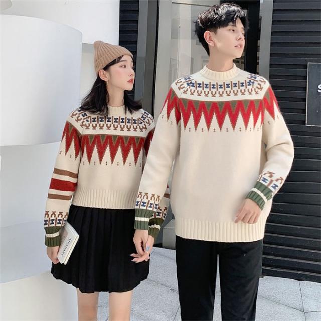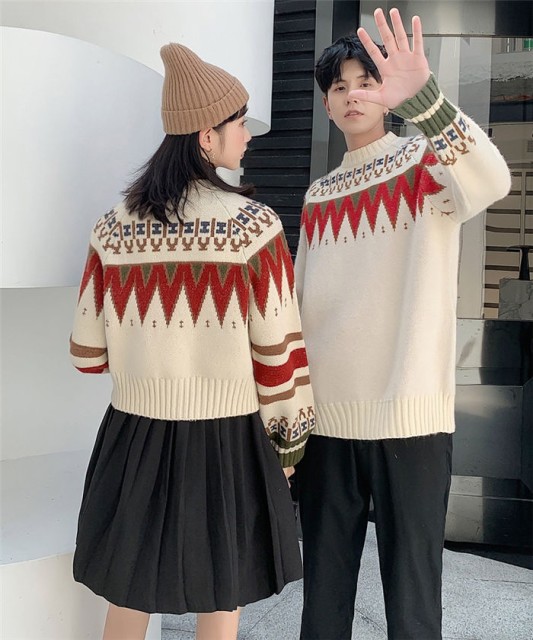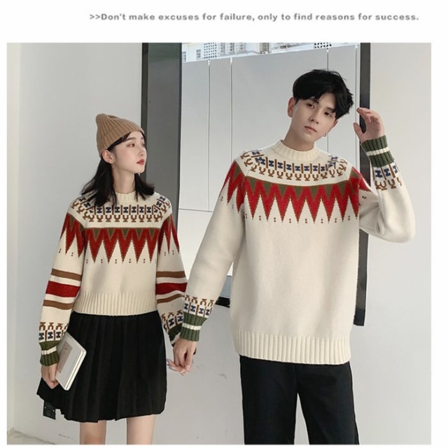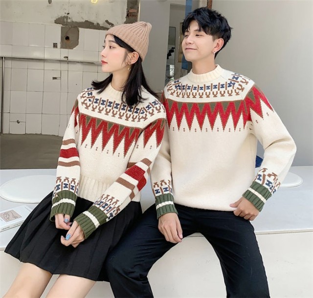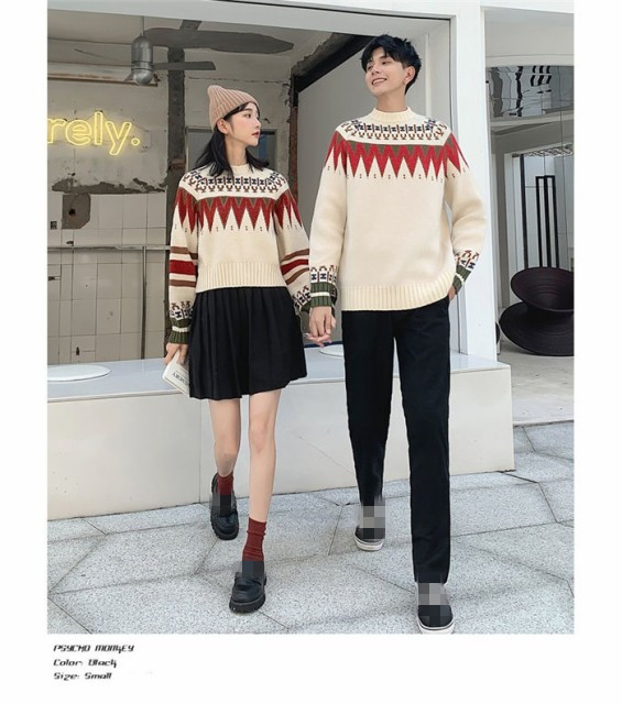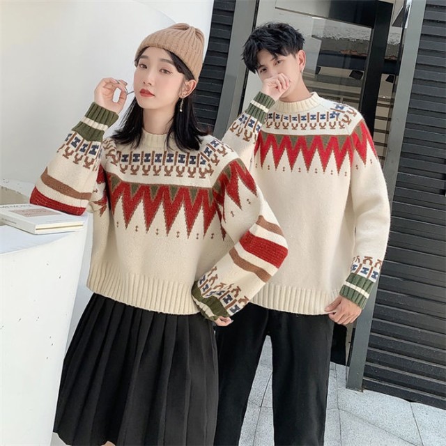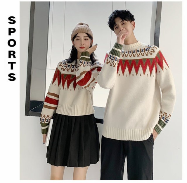 ペアルックニットセーター カットソー ペアルックニット 秋冬 厚手 メンズ レディースワンピース 長袖 トップス カップルお揃い男女兼用 プレゼント お誕生日