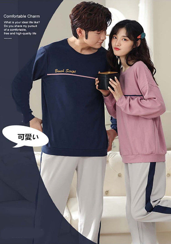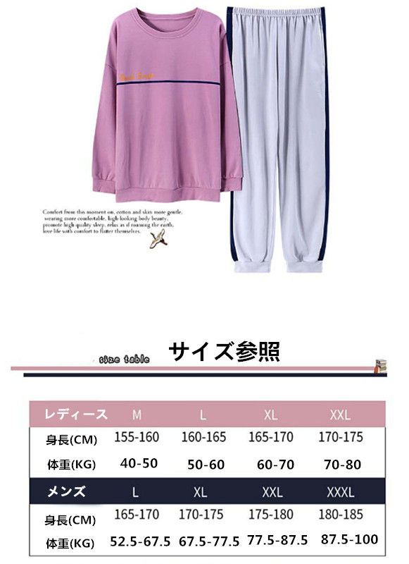 【ペア価格】 ペアルック パジャマ レディース メンズ 春秋 長袖 上下セット パンツセット カップル 寝巻き 寝間着 お揃い スウェット プレゼント ハネムーン ファッション プレゼント