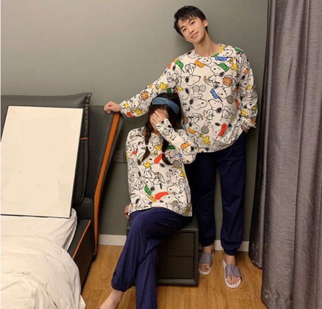 ペアルックパジャマ 上下セット カップルペアルック 春秋冬ルームウェア 長袖 ペアルックパジャマお揃い 可愛い スヌーピー柄 男女兼用 ナイトウェア お揃い 部屋着