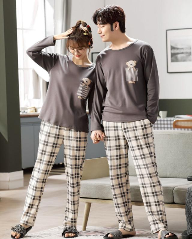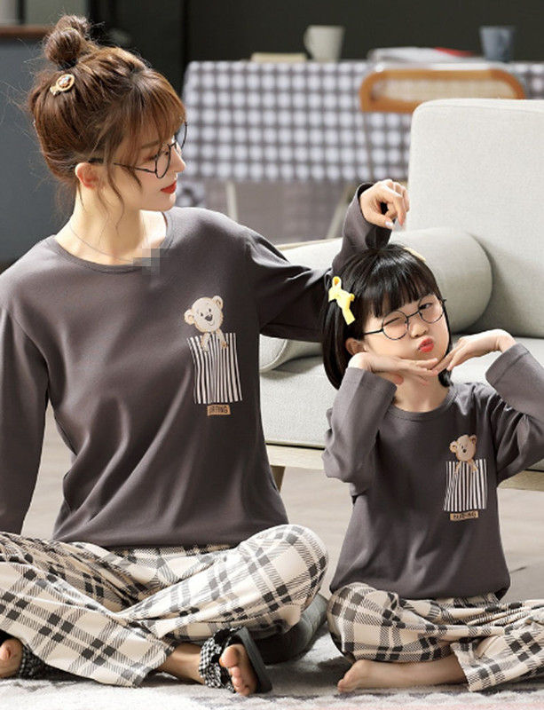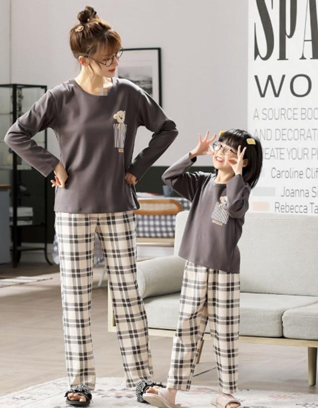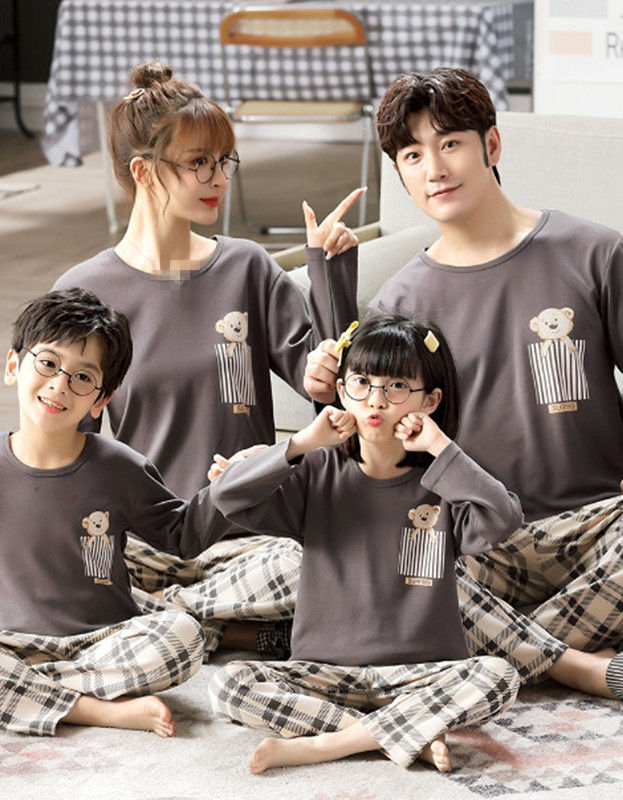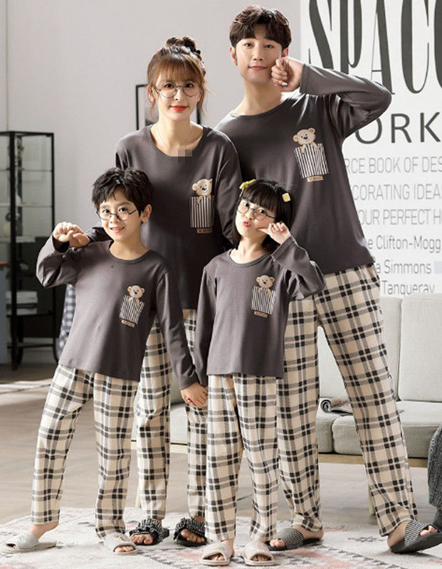親子ペアパジャマ 上下セット 秋冬ルームウェア 長袖 ペアルックパジャマお揃い パジャマ 寝間着寝巻き ご家族 ご夫婦 ママパパ子供 可愛いクマ チャック柄 お誕生日 ギフト