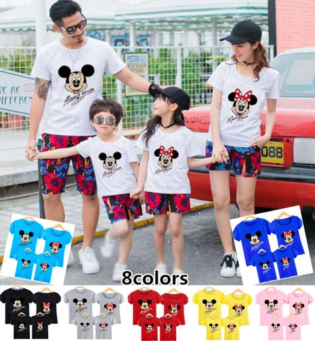 T-shirt Tシャツ ディズニー親子ペア ペアルック 半袖 ミッキー ミニー 半袖 夏 夫婦 ご家族揃いお誕生日
