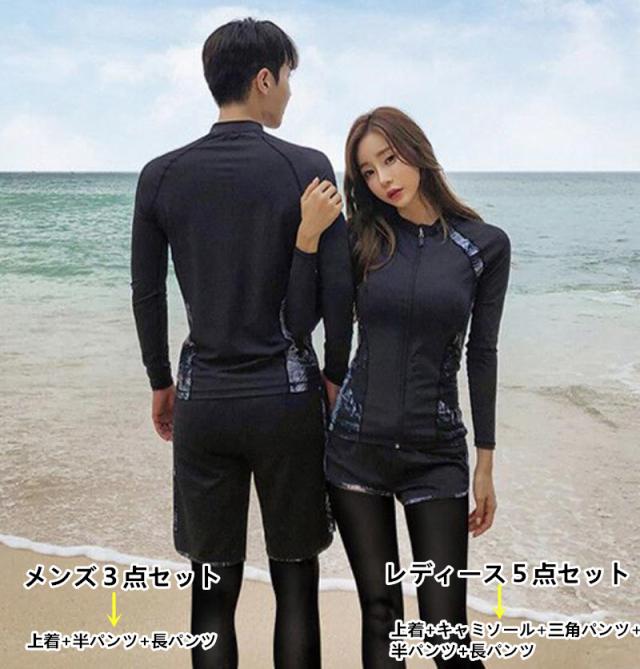 【ペア販売】ペアルック カップル 水着スイムウエア フィットネス水着 ご夫婦.カップルお揃い ラッシュガード 紫外線対策 日焼け防止
