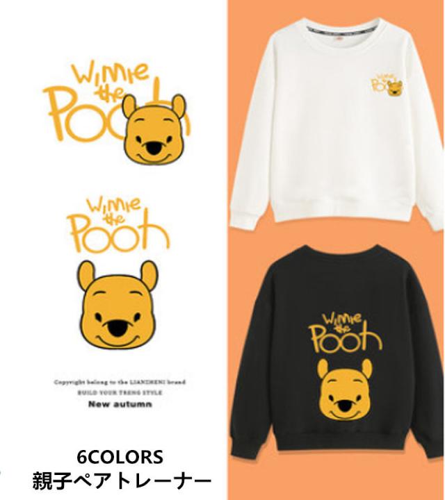 6colors パーカー トップストレーナー ディズニー親子ペア ペアルック 長袖 くまのプーさん柄 秋冬 夫婦 綿 POOH可愛い 裏起毛なし 薄手 男女兼用