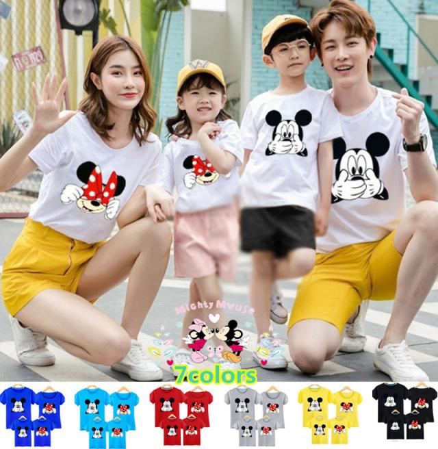 T-shirt Tシャツ ディズニー親子ペア ペアルック 半袖 ミッキー ミニー 半袖 夏 夫婦 ご家族揃いお誕生日