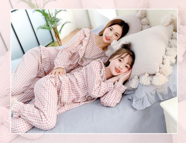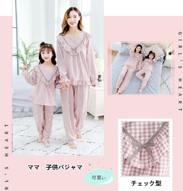 親子パジャマ 上下セット春秋ルームウェア 長袖 ペアルックパジャマお揃い 可愛い レディースナイトウェア ご家族 ママ 女の子 超可愛い 体調カバー チェック柄
