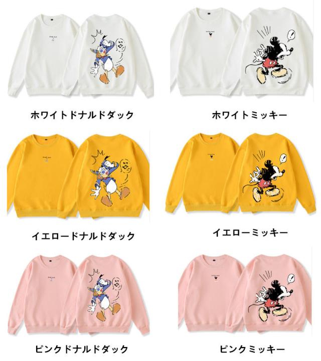 ペアルック ミッキー ドナルドダック結婚記念日 カップル パーカー ディズニー トレーナー 上着 長袖 結婚お祝い 綿 旅行 プレゼント 裏起毛/裏起毛なし