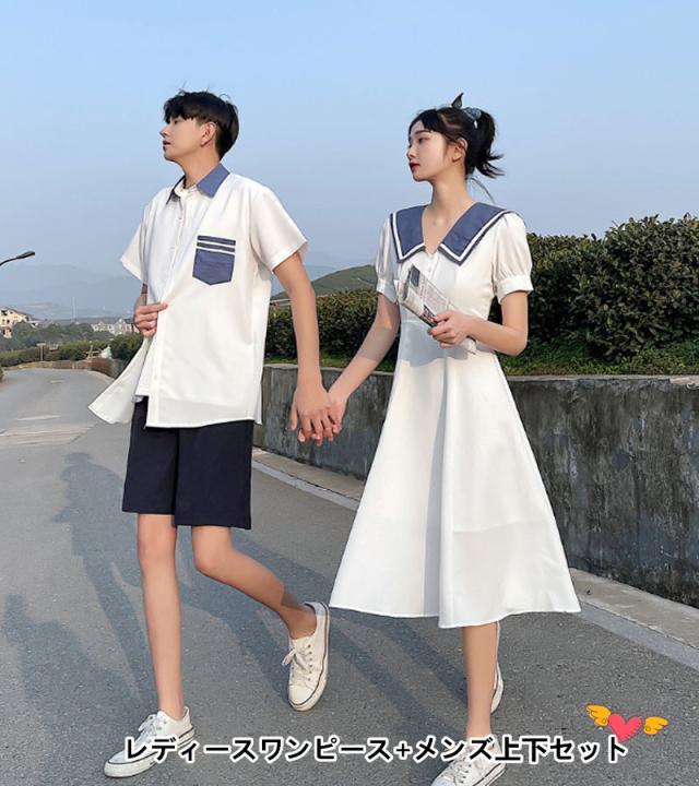 【ペア価格】メンズ上下セット レディースワンピース カップルお揃いカップルペアルック tシャツ パンツ 夏結婚お祝い 旅行 海 花柄 ハネムーンプレゼント お誕生日 夏