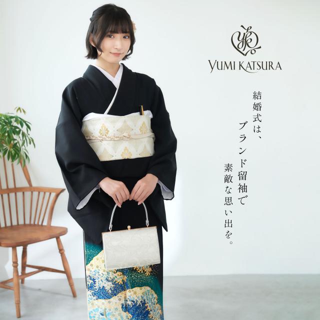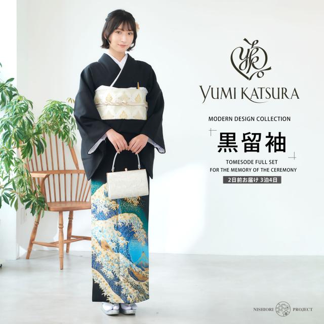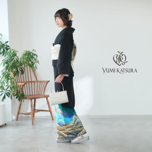 桂由美 YUMI KATSURA ブランド レンタル 黒留袖 フルセット 結婚式 婚礼 貸衣装 往復送料無料 東海道五十三次 富士山 波 吉祥柄 No218