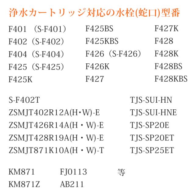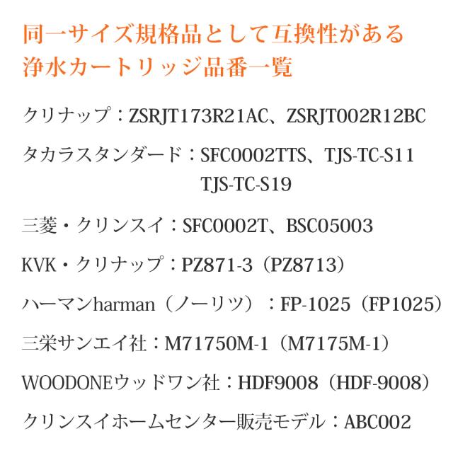 ■ 【純正品ではなく互換品です】スパウトインタイプ 浄水器(水栓一体型)交換用 浄水カートリッジHSC17023の互換性のある商品 ■ 【17+2物質除去&高塩素除去】遊離残留塩素、濁り、クロロホルム、ブロモジクロロメタン、ジブロモクロロメタン、ブロモホルム、テトラクロロエチレン、トリクロロエチレン、総トリハロメタン、CAT(農薬)、溶解性鉛、2-MIB(カビ臭)、1,2-DCE※、ベンゼン、陰イオン界面活性剤、フェノール類、ジェオスミン、鉄(微粒子状)、アルミニウム(中性) ■ 【他の互換性のある浄水カートリッジ】 SFC0002T、SFC0002TTS、BSC05003、ZSRJT173R21AC、ZSRJT002R12BC、PZ871-3、FP1025、TJS-TC-S19、TJS-TC-S11(パッケージや品番・ラベルが違うだけで中身は同商品、同性能ですので共通してお使い頂けます。) ■ 【対応の水栓(蛇口)型番】F401 (S-F401)、F402(S-F402)、F404(S-F404)、F425(S-F425)、F425K、F425BS、F425KBS、F426(S-F426)、F426K、F427、F427K、F428、F428K、F428BS、F428KBS、S-F402T、ZSMJT402R12A(H・W)-E、ZSMJT426R14A(H・W)-E、ZSMJT428R19A(H・W)-E、ZSMJT871K10A(H・W)-T、TJS-SUI-HN、TJS-SUI-HNE、TJS-SP20E、TJS-SP20ET、TJS-SP25ET、KM871、KM871Z、FJ0113、AB211 等 ■ 【カートリッジの取替時期の目安】 1日に20Lご使用の場合、約2ヶ月/個。(取替時期の目安は、使用水量・水質・水圧などにより異なります。) 浄水カートリッジ対応の水栓(蛇口)型番: F401 (S-F401)、F402(S-F402)、F404(S-F404)、F425(S-F425)、F425K、F425BS、F425KBS F426(S-F426)、F426K、F427、F427K、F428、F428K、F428BS、F428KBS、S-F402T ZSMJT402R12A(H・W)-E、ZSMJT426R14A(H・W)-E、ZSMJT428R19A(H・W)-E、ZSMJT871K10A(H・W)-T TJS-SUI-HN、TJS-SUI-HNE、TJS-SP20E、TJS-SP20ET、TJS-SP25ET、KM871、KM871Z、FJ0113、AB211 等 同一サイズ規格品として互換性がある浄水カートリッジ品番一覧: クリナップ:ZSRJT173R21AC、ZSRJT002R12BC タカラスタンダード:SFC0002TTS、TJS-TC-S11、TJS-TC-S19 三菱・クリンスイ:SFC0002T、BSC05003 KVK・クリナップ:PZ871-3(PZ8713) ハーマンharman(ノーリツ):FP-1025(FP1025) 三栄サンエイ社:M71750M-1(M7175M-1) WOODONEウッドワン社:HDF9008(HDF-9008) クリンスイホームセンター販売モデル:ABC002 ※浄水カートリッジ取り替え後は、浄水を1分以上流してからご使用ください。 ※購入検討商品に関してご不明な点やご不安をお持ちのお客様は、ご購入前にお問い合わせください。 |