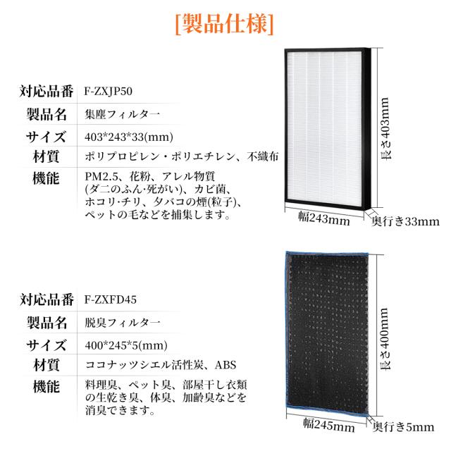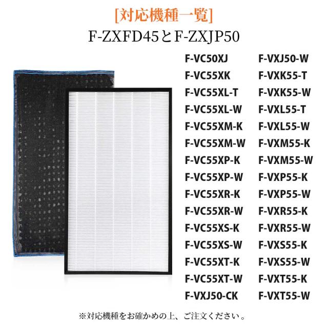 集塵フィルター f-zxjp50 脱臭フィルター f-zxfd45 のセット対応機種一覧: ※品番末尾の「-K」や「-W」などは色柄コードです。 |