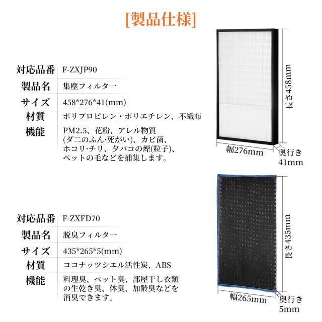 加湿空気清浄機用 F-ZXJP90 F-ZXFD70 交換フィルター 集じんフィルター f-zxjp90 脱臭フィルター f-zxfd70 パナソニック 空気清浄機 交換用 集塵・脱臭フィルターセット「互換品/2枚セット」