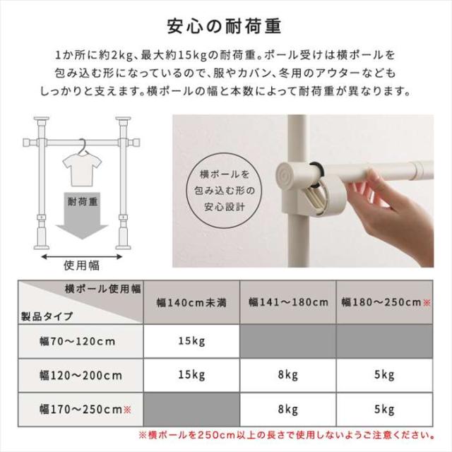 ■商品名:つっぱりハンガーラック 1段 幅200cm つっぱり収納 ハンガーラック 省スペース