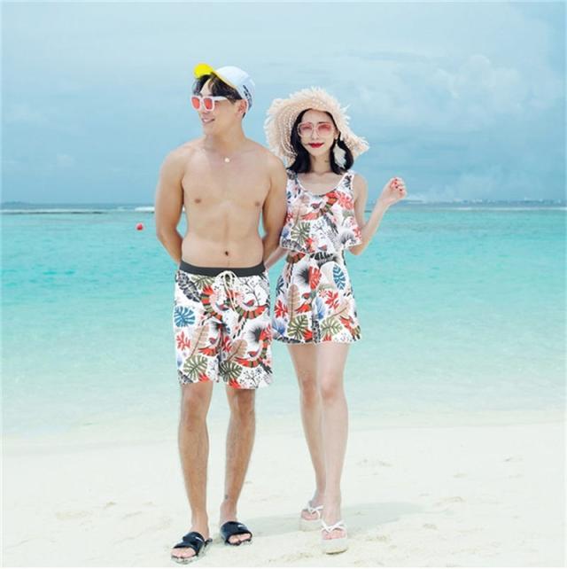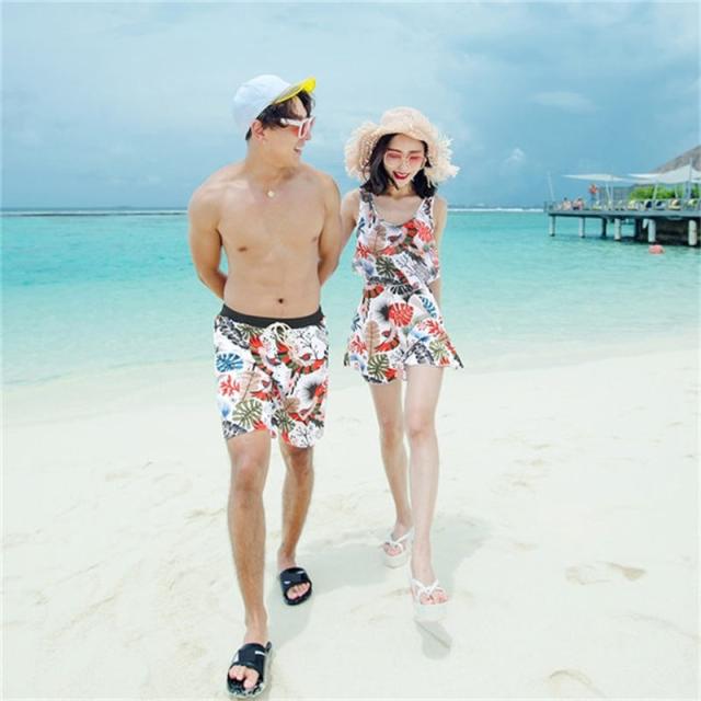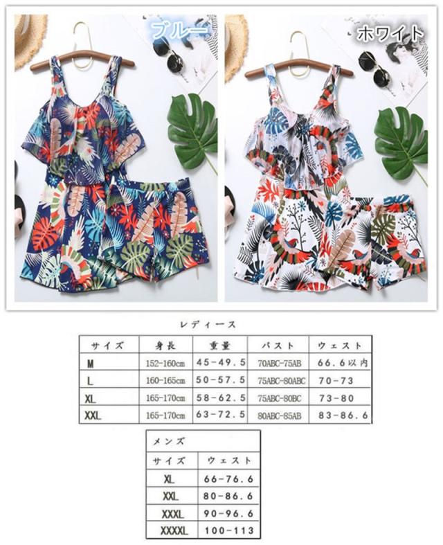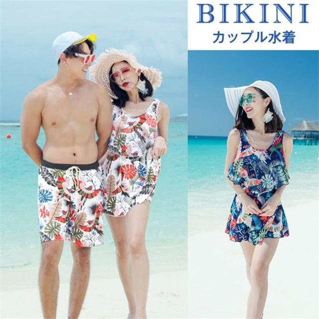 水着 ペア水着 ワンピース 男女セット カップル ミズギ 体型カバー ビキニ ワンピース 花柄 おしゃれ お揃い プール 海水浴 結婚祝い