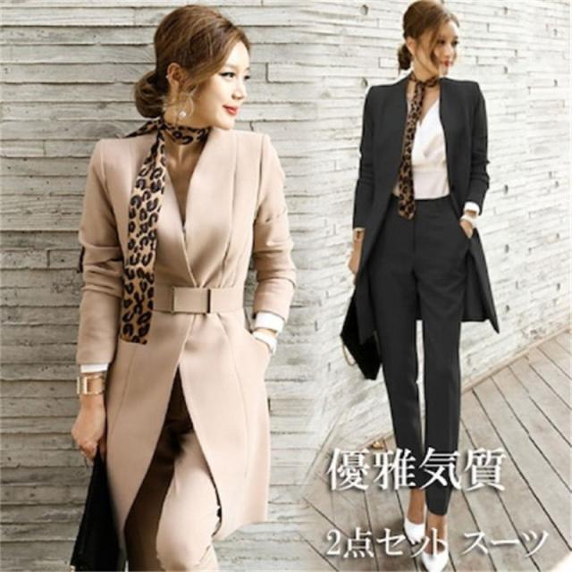 スーツセット レディース 2点セット スーツ パンツスーツ フォーマルスーツ 上下 セットアップ 制服ビジネス OL 女性 通勤 着痩せ 発表会 就活 面接