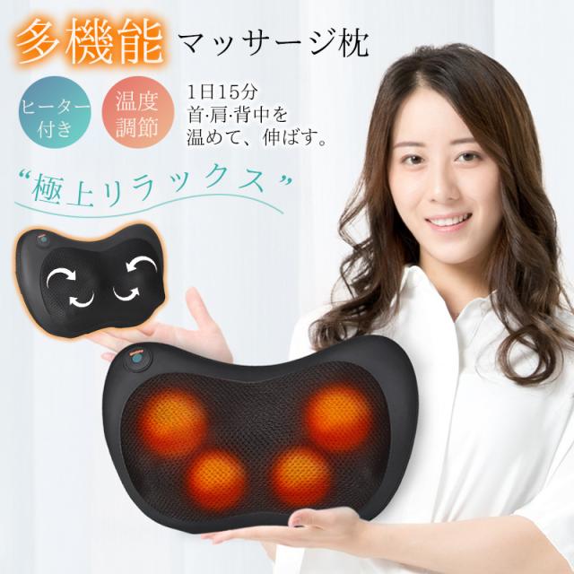 首枕 マッサージ枕 多機能 マッサージクッション 首 腰マッサージ 首マッサージ USB充電式 ヒーター付き マッサージ器 ネック