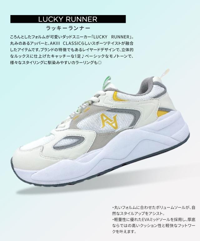 アキクラシック レディーススニーカー 厚底シューズ ラッキーランナー ダッドスニーカー ローカット 5cmヒール おしゃれ 韓国ファッション ブランド コーデ 脚長効果 K-POP トレンド インフルエンサー AKIII CLASSIC AKIII LUCKY RUNNER AKC0105