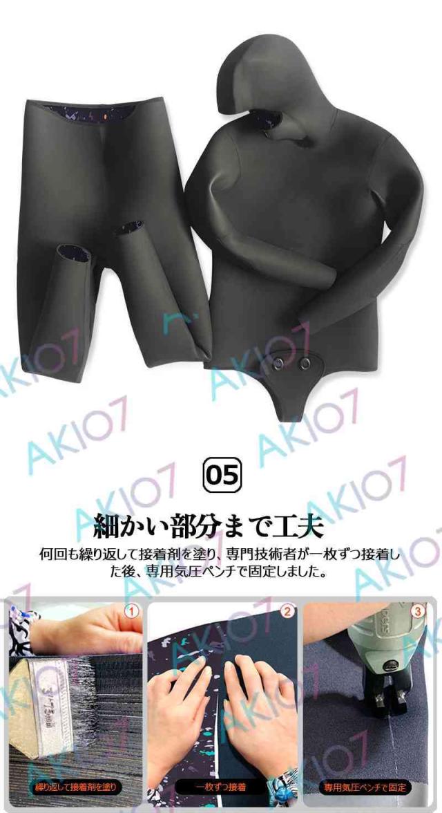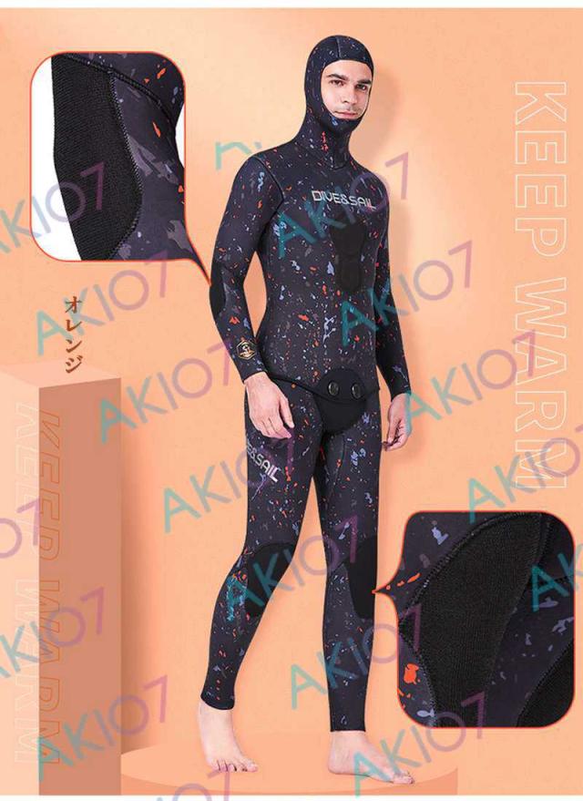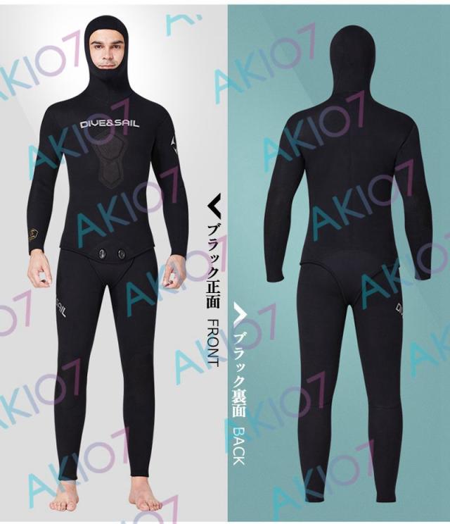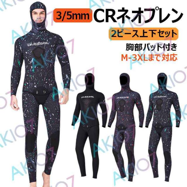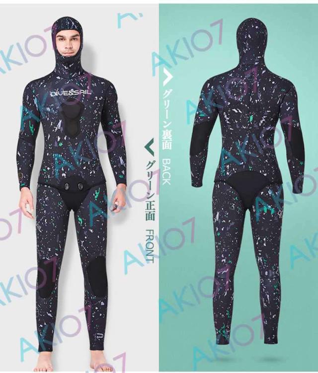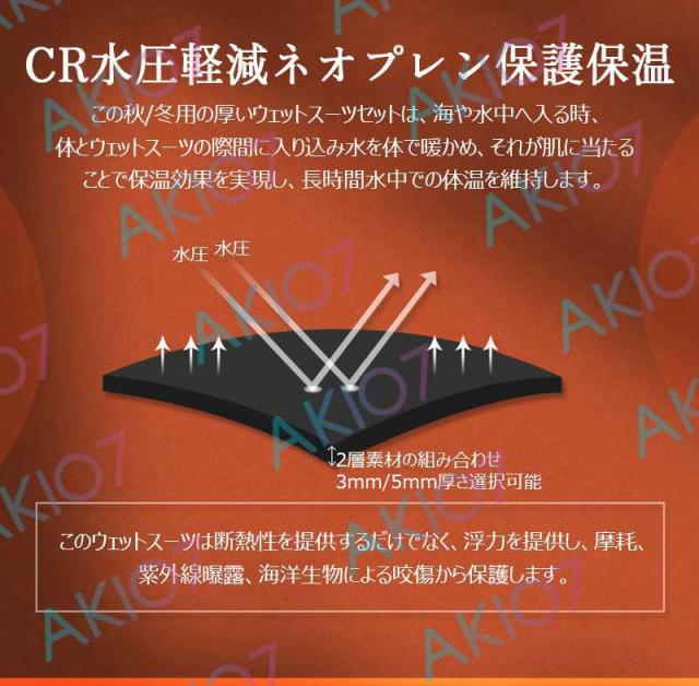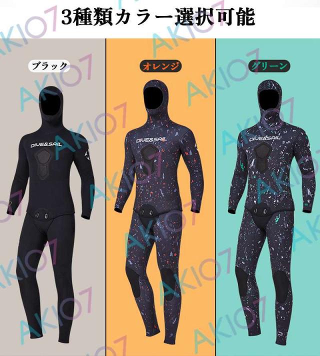 【5mm厚さ&魚突き】 フード付き 2ピース 上着 ロングパンツ 上下セット メンズ ウェットスーツ フルスーツ トライアスロンウェア 素潜り ネオプレン 秋 冬 防寒