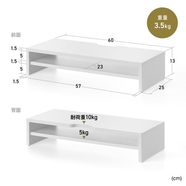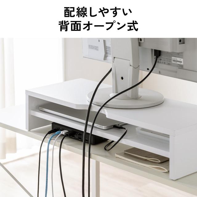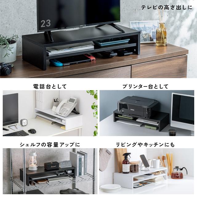 モニター台 2段式 幅60cm 机上台 モニター下収納 2段収納 木製 ブラック ホワイト[100-MR214]