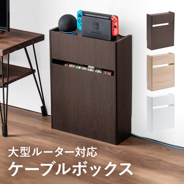 ルーター収納ボックス ケーブルボックス 幅40cm 高さ52.4cm 充電ステーション 大型ルーター Wi-Fi モデム 扉付き 木製 2段 ダークブラウン ライトブラウン ホワイト[200-CB061]