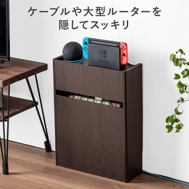 ⇒ご購入の前にご確認下さいルーターや電源タップが収納できるコンセント付き木製収納ラック。大型タイプのルーターも収納可能。奥行き13cmとスリム設計。幅40cm、高さ52.4cm、奥行き13cm。ダークブラウン。【WEB限定商品】