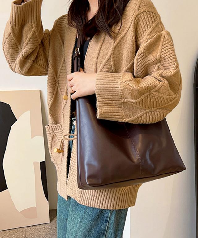 シンプルレザーショルダーバッグ/サブバッグ/トートバッグ。