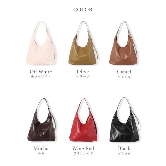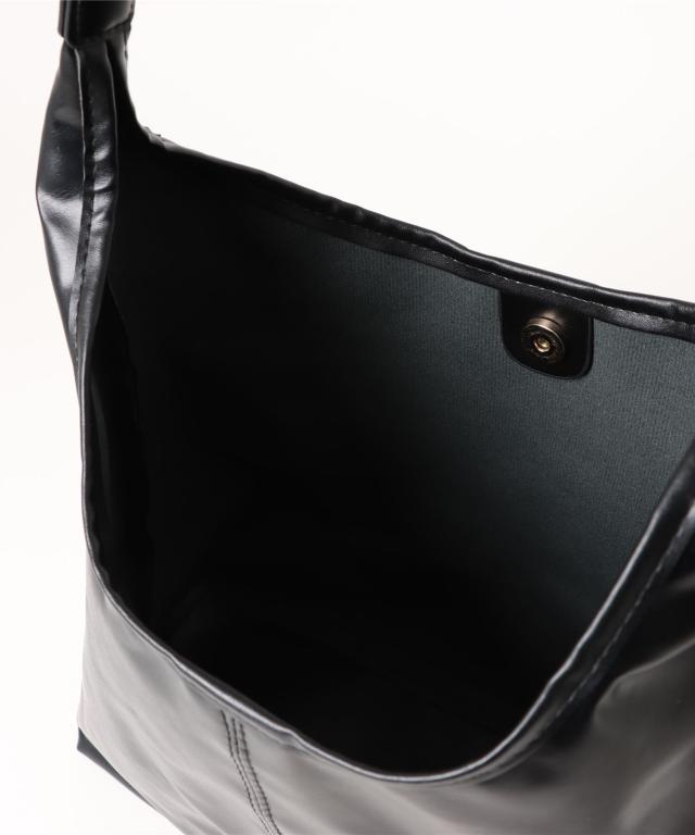 セミマット加工のPUレザーを使用し、アシンメトリーショルダーがアクセントになるスタイリッシュなショルダーバッグ。