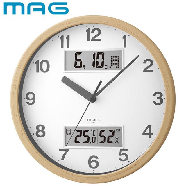 MAG(マグ) 掛け時計 壁掛け時計 アナログ おしゃれ インテリア 温度計 湿度計 温湿度計 カレンダー 静音 連続秒針 直径29.0cm 木目調 ナチュラル ダブルポイント W-807 N-Z ノア精密【送料無料】