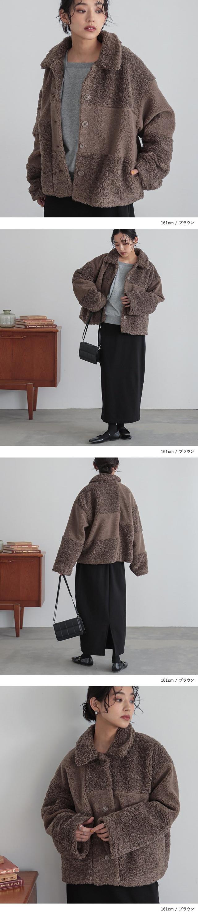 【送料無料】『パッチワークボアジャケット』【メール便不可】【80】[アウター レディース ジャケット ブルゾン ボア パッチワーク 羽織 ふんわり もこもこ あたたかい 体型カバー オシャレウォーカー ]
