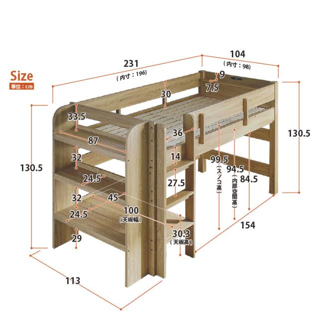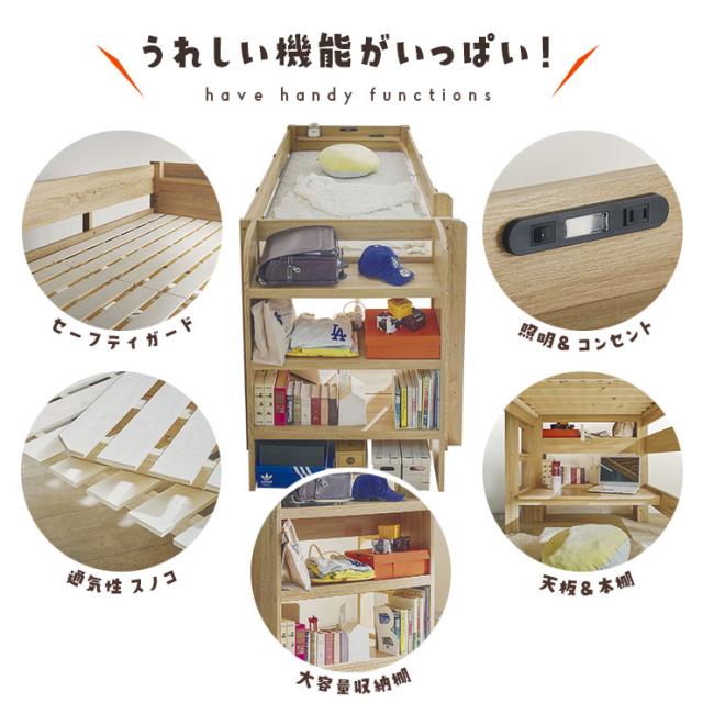 ロフトベッド 二段ベッド シングルサイズ BASE(ベース) 4色対応 2段ベッド システムベット ハイタイプ すのこベッド 宮付き コンセント LEDライト デスク 収納 大容量 木製 ナチュラル おしゃれ 子供部屋