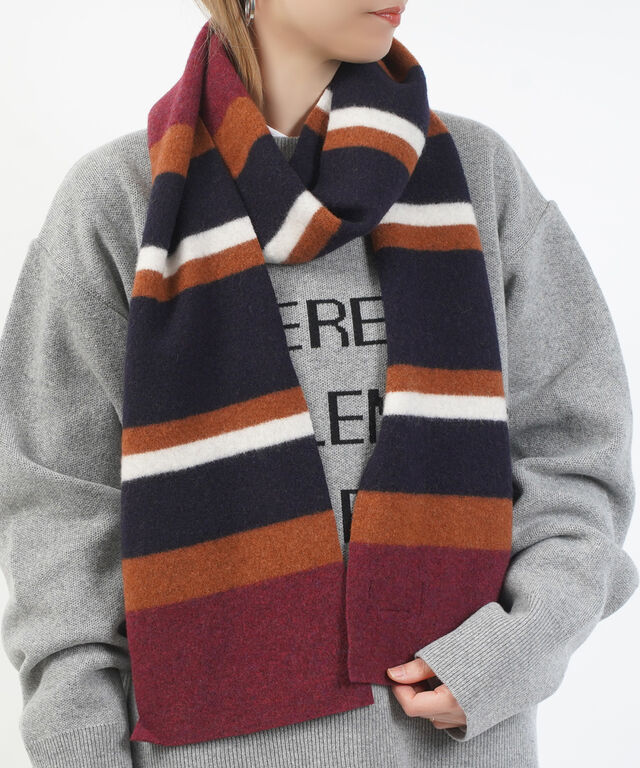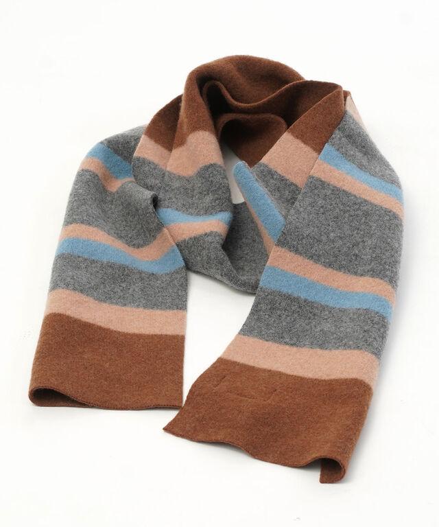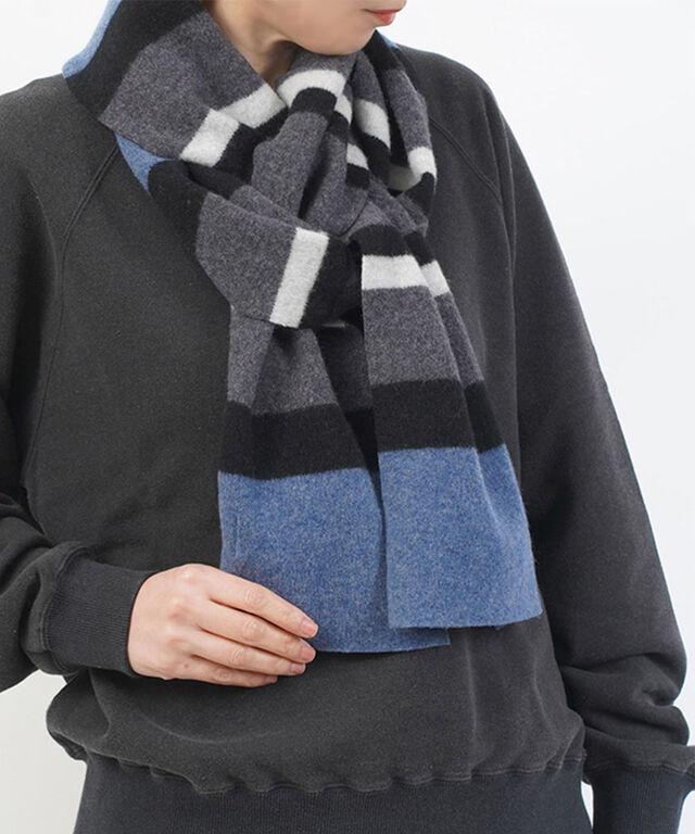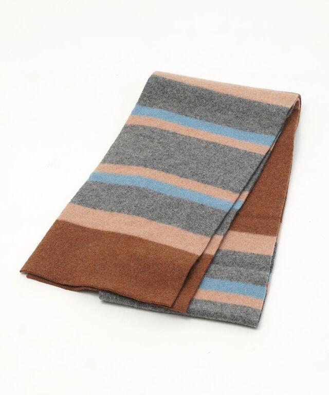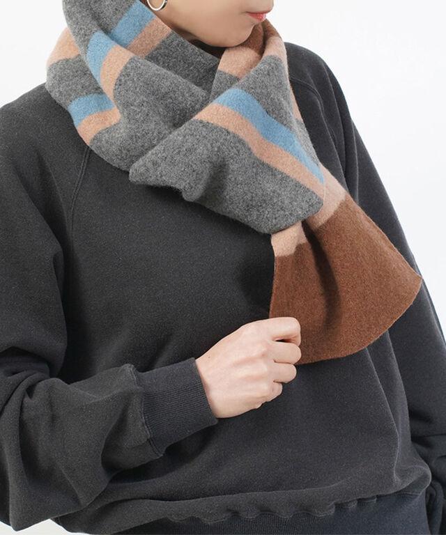 シンプルなボーダー柄が着こなしのアクセントになるマフラーです。