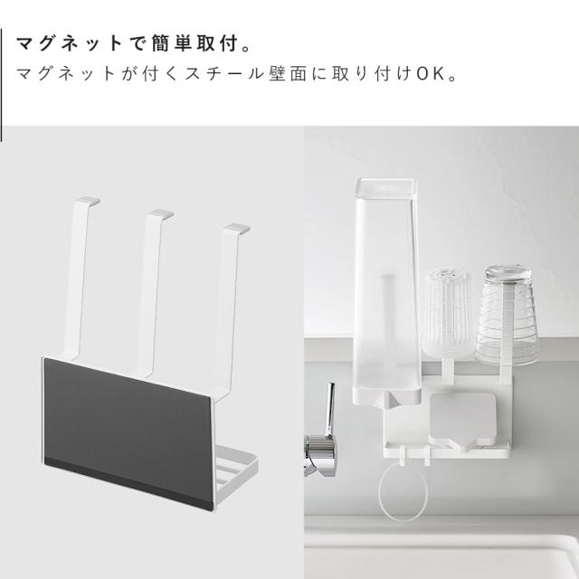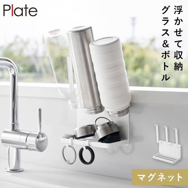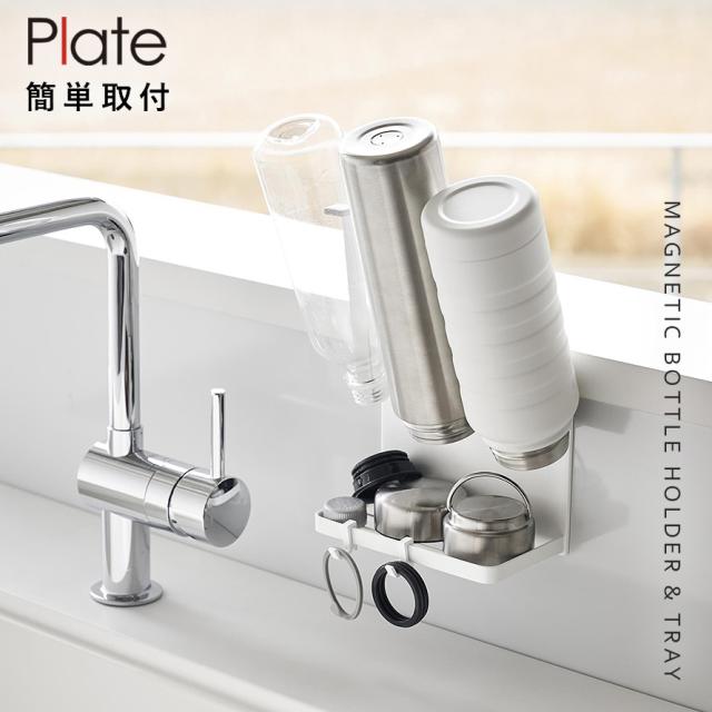 マグネットボトルホルダー&トレー プレート ホワイト 山崎実業 plate 水切りラック 水筒 スタンド 哺乳瓶 シンク 水切り ペットボトル おしゃれ モノトーン 1659