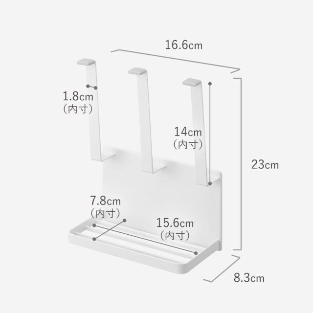 ■内寸サイズ:ホルダー部/幅1.8×奥行2.7×高さ14cm(1つあたり) ホルダー同士の間隔/5.7cm トレー部/幅15.6×奥行7.8×高さ8(ホルダー部との間隔)cm