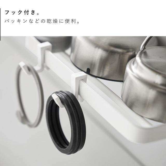 トレーに付属のフックを取り付ければパッキン等を干すのにも便利。