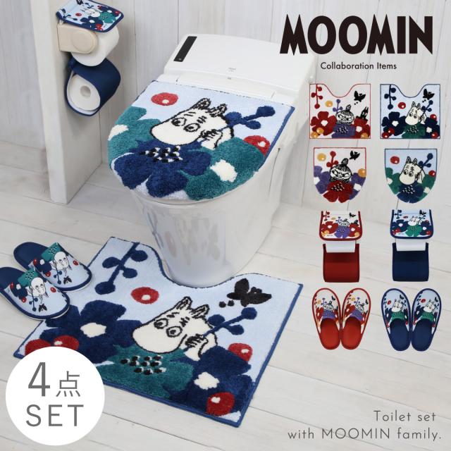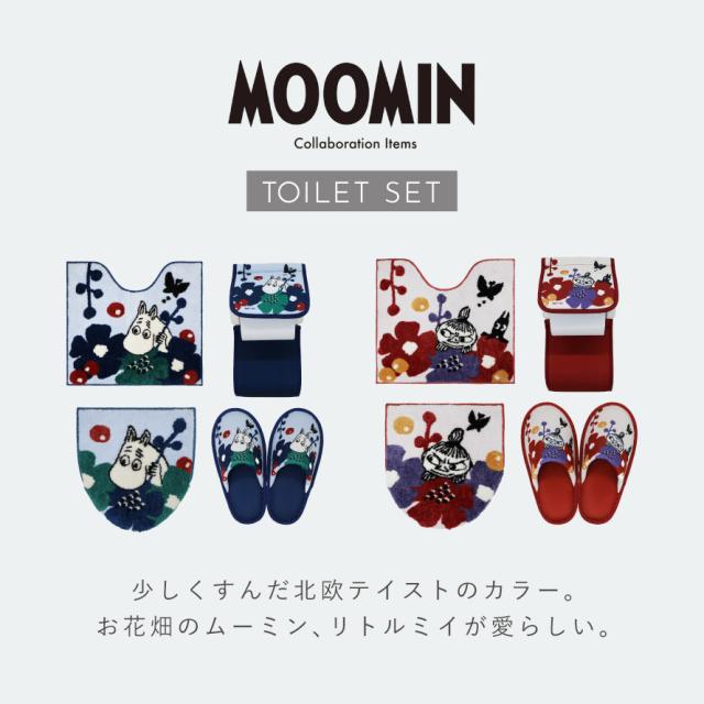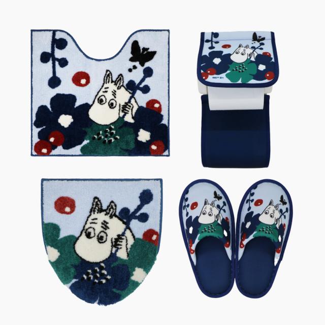 ムーミンのキャラクター達が、お花畑でちょうちょと遊ぶ、トイレマット&兼用フタカバー&スリッパ&ペーパーホルダーカバーの4セットです。少しくすんだ、北欧テイストのカラー。ムーミン、リトルミイの2柄をご用意。トイレが明るくなる楽しい絵柄です。
